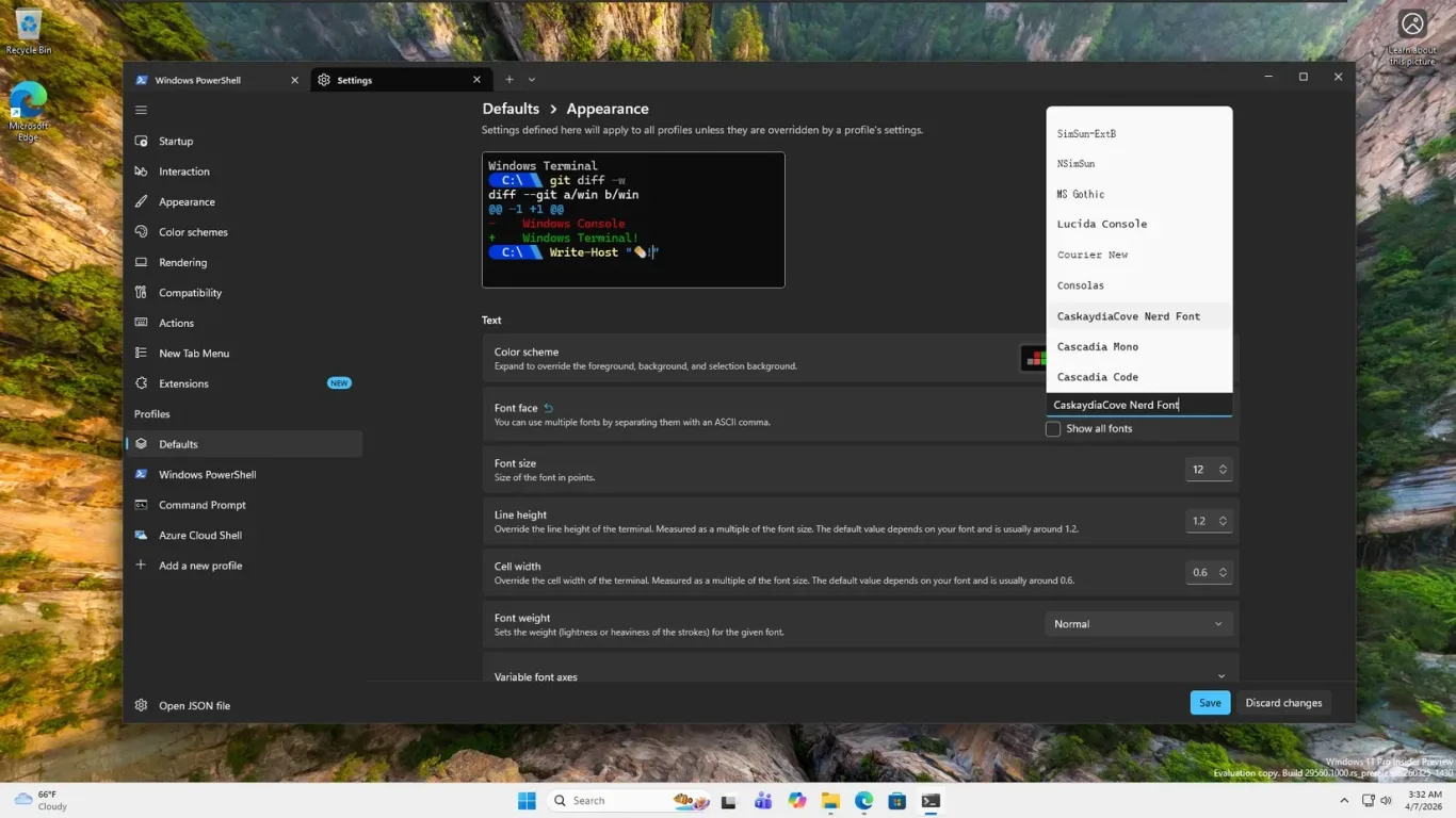 Langkah pertama dalam transformasi ini adalah memperbaiki fonta. Tanpa fonta yang mendukung glif, terminal Anda hanya akan menampilkan kotak-kotak kosong saat mencoba memuat ikon. Anda dapat mengaturnya melalui menu: Settings -> Defaults -> Appearance -> Font face setelah mengunduh fonta dari situs Nerd Fonts.
